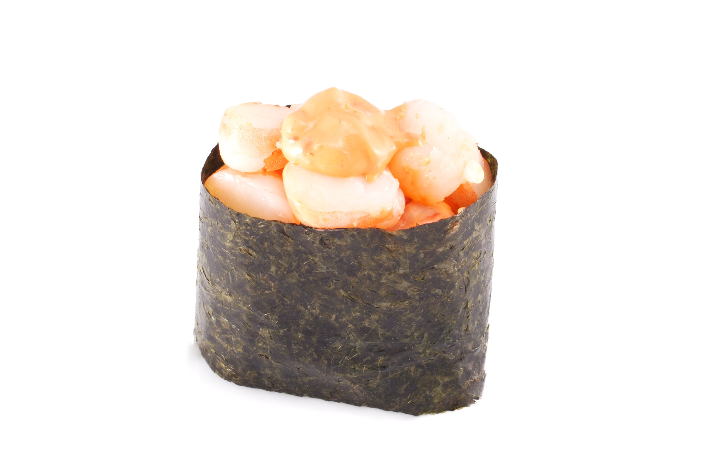 Состав: Креветка, спайси соус(острый), рис, нори.