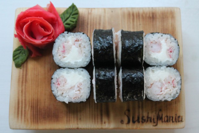 Состав: Креветка, сливочный сыр, снежный краб*, рис, нори.