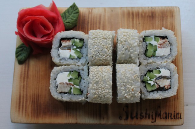 Ролл «Унаги в кунжуте» — необыкновенно аппетитное японское лакомство. Оно достойное иметь только положительные отзывы от тех, кто его съел. Приобретя его с доставкой на дом доставкой суши в Гомеле для себя или компании из кафе «Sushimania», вы никого не оставите голодным. Это блюдо очень питательное и отлично справится со своим основным заданием – накормить любого. Самые свежие продукты и самые вкусные роллы — это всё у нас